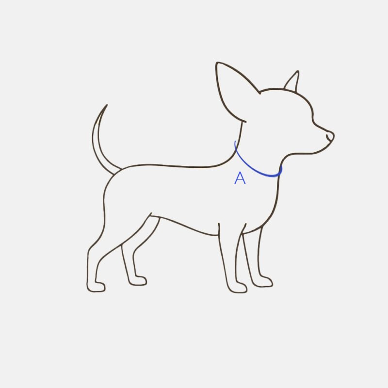 Sprawdź, w jakim przedziale mieści się zmierzony obwód szyi Twojego psa.- Przykład: obwód 23 cm → wybierz rozmiar XS.